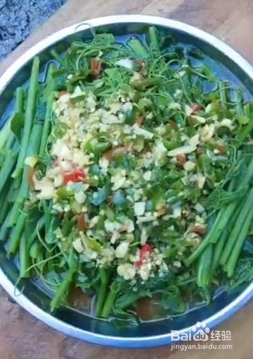 1. 凉拌蓝瓜尖:将处理好的蓝瓜尖放入开水中焯水,捞出后放入凉开水中浸泡,捞出沥干水分。加入蒜末、盐、醋、香油等调料拌匀即可。
